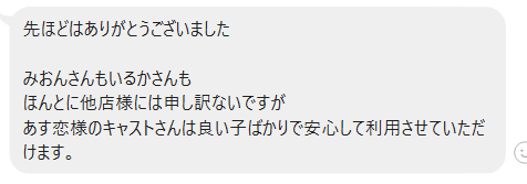 それが【みおんちゃん】と【いるかちゃん】の指名です。