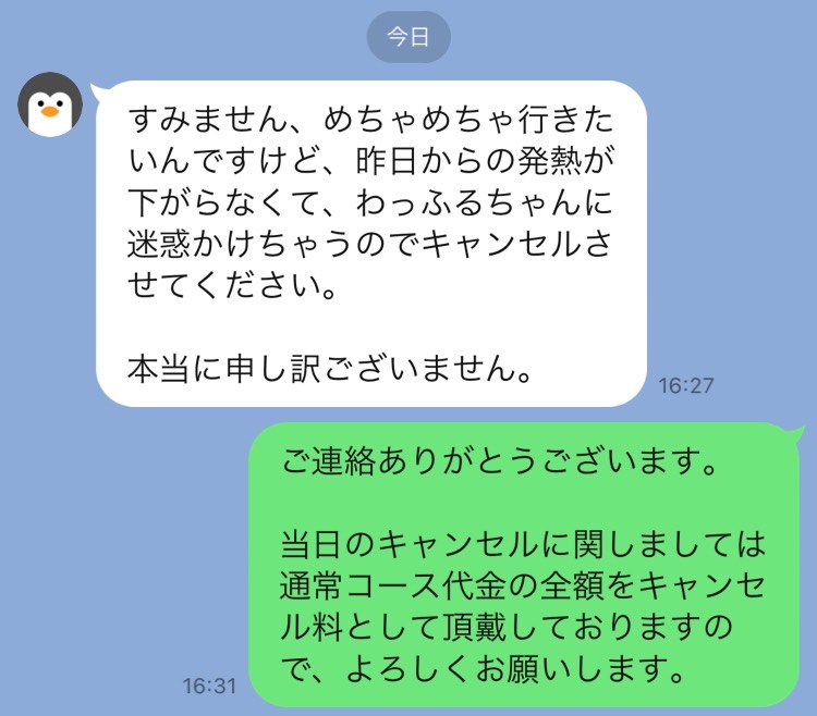 LINEの通知音が鳴るのは普段であれば大変嬉しいことでございますが、段々と雲行きが怪しくなりまさかの予約キャンセルを申し出る連絡まで…