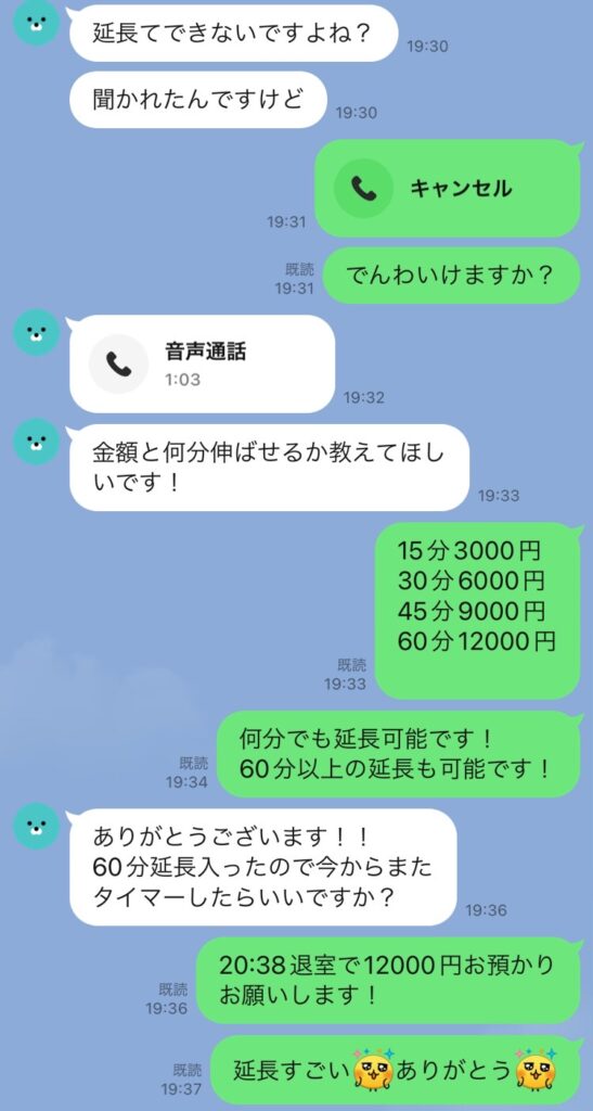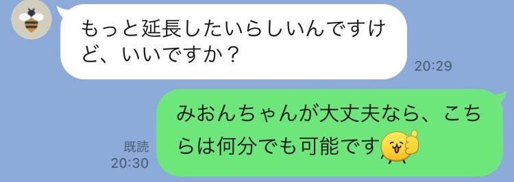 同じタイミングで、みおんちゃんから「延長って少しでもできますか?」と相談LINEが⬇️